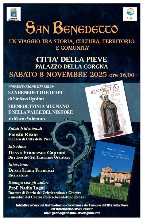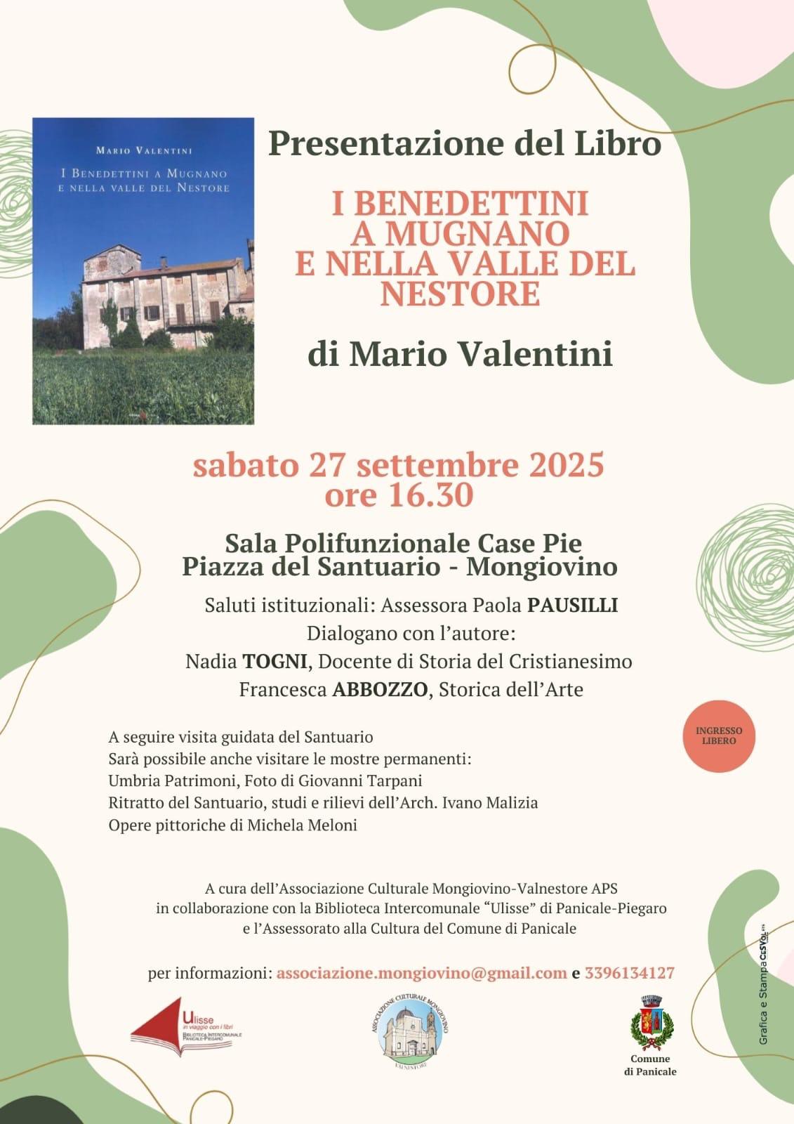 Mario Valentini, I Benedettini a Mugnano e nella Valle del Nestore, Futura Libri Perugia, gennaio 2025, con la prefazione di Nadia Togni.