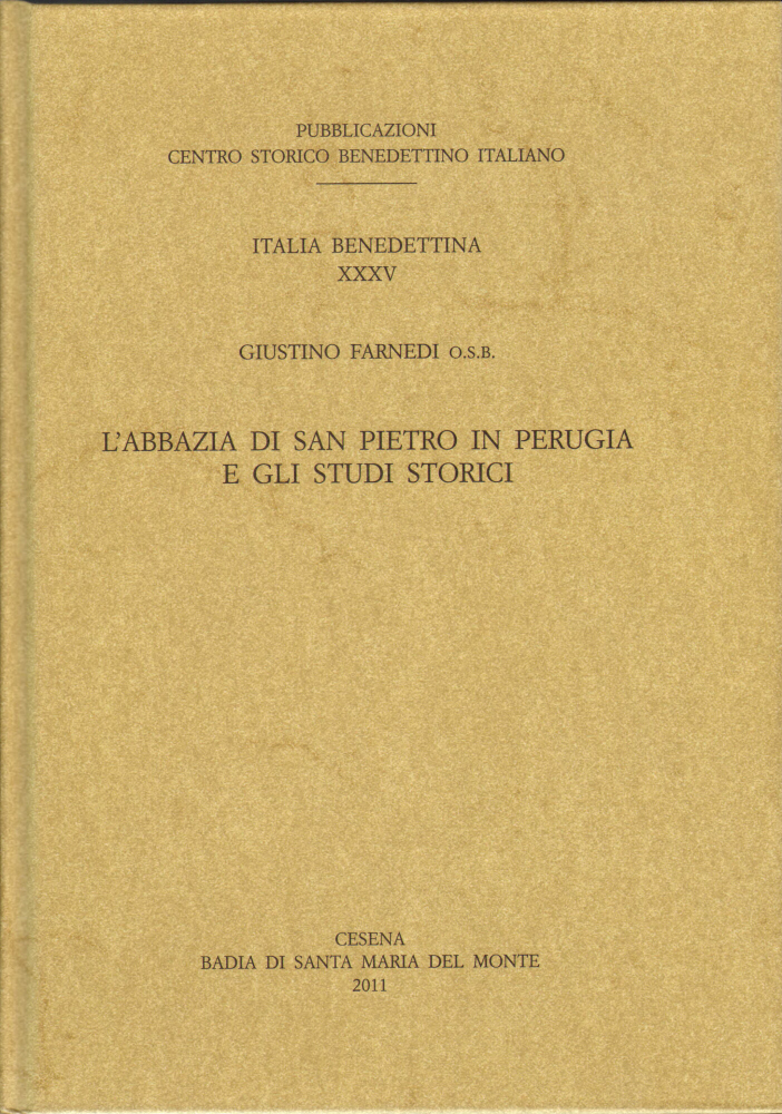 Giustino Farnedi o.s.b., L’Abbazia di San Pietro in Perugia e gli studi storici, Cesena, Centro Storico Benedettino Italiano, 2011 (Italia Benedettina, 35), Perugia, Deputazione di Storia Patria per l’Umbria, 2011 (Biblioteca della Deputazione di Storia Patria per l’Umbria, 9), xv, 568 pp., 21 tavv. f.t.